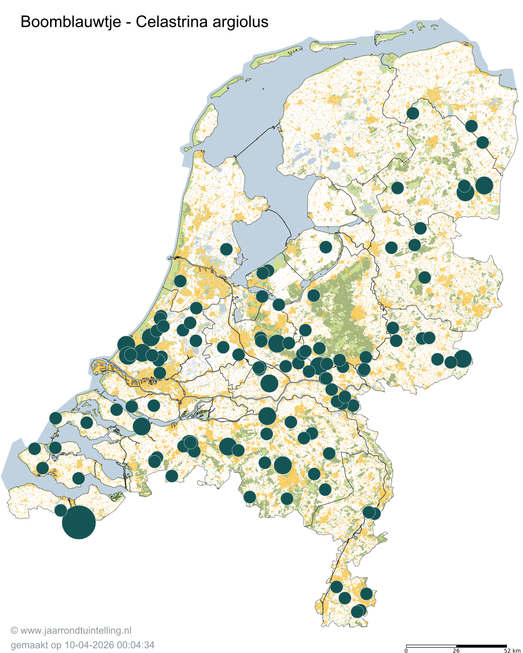 Op de kaart zie je per 5x5 km2 waar de soort is waargenomen in 2026.