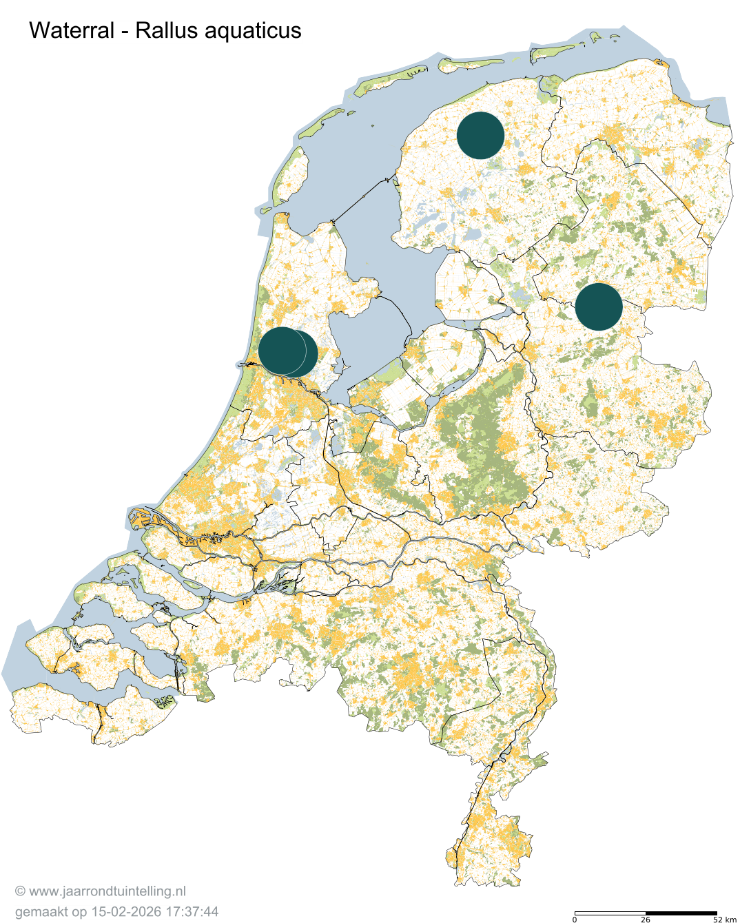 Op de kaart zie je per 5x5 km2 waar de soort is waargenomen in 2026.